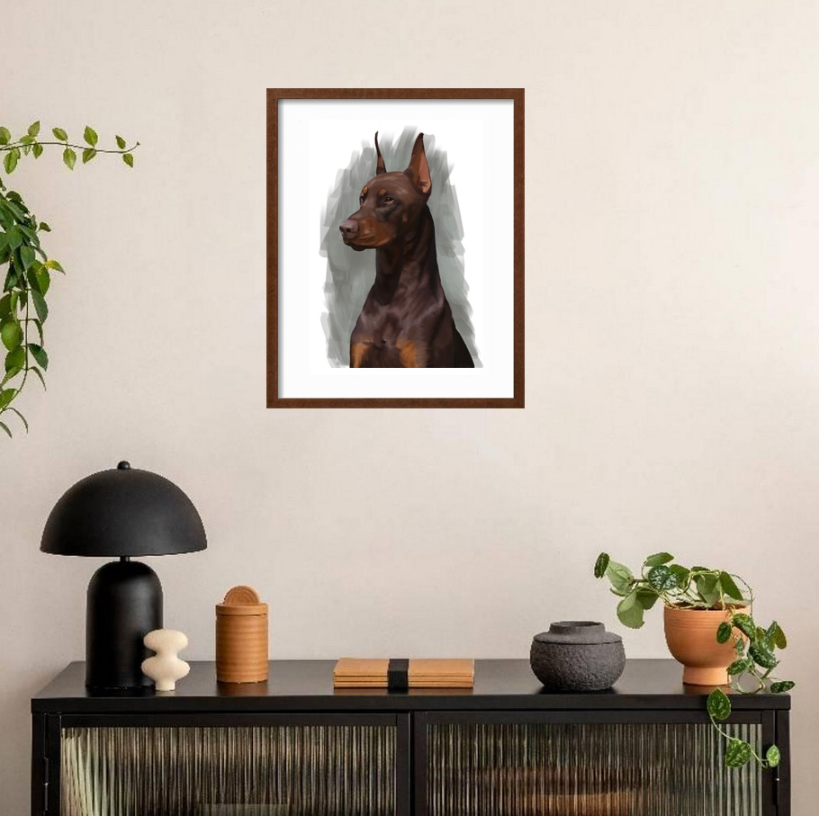 Enhance your living space with this Doberman Pinscher Painted Portrait, a one-of-a-kind artwork that captures the true spirit of your Doberman Pinscher. Crafted by skill provision, this portrait showcases the unique features and distinctive personality of your Doberman Pinscher. The captivating painted technique infuses a sense of energy and liveliness, creating a truly mesmerizing artwork. This portrait is an exceptional way to immortalize your Doberman Pinscher’s essence, making it a cherished centerpiece in any setting. Whether as a gift or a keepsake, this portrait is the perfect way to celebrate your furry companion.