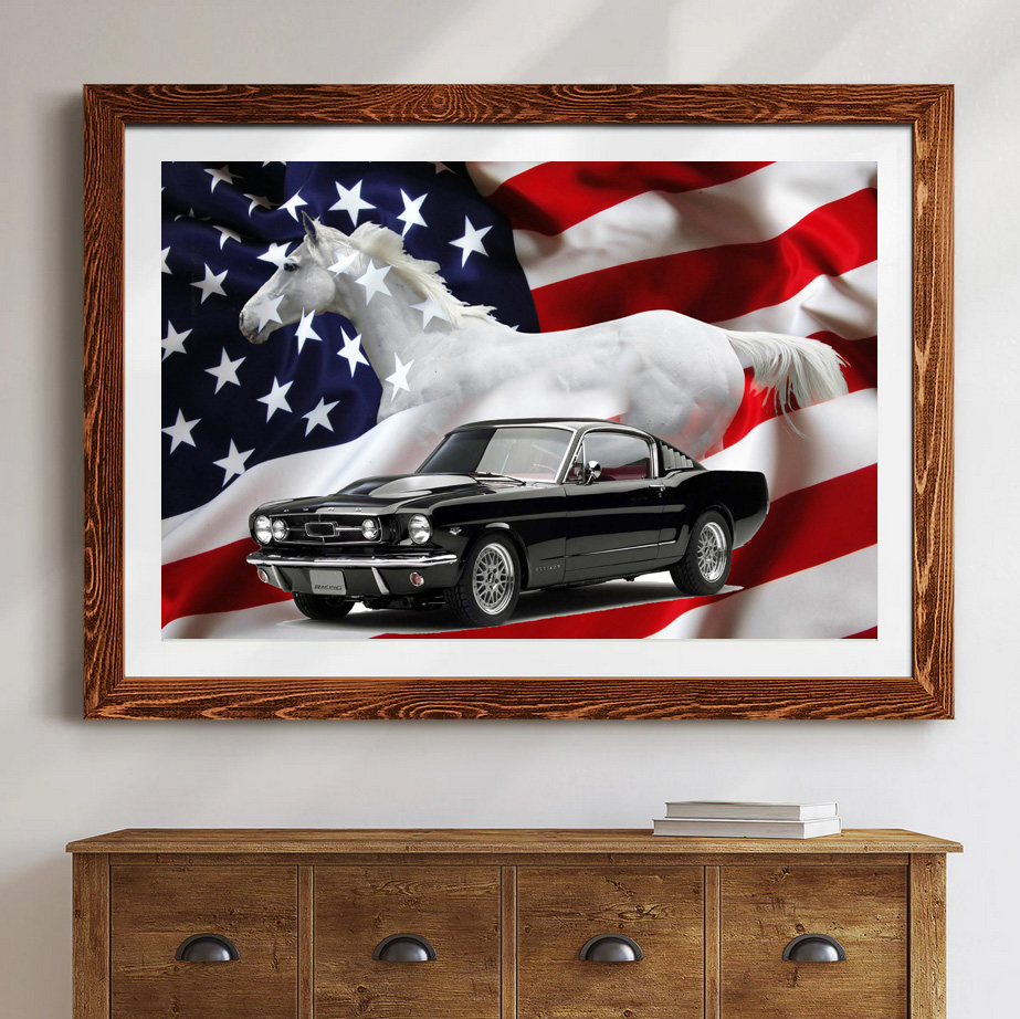 Experience the thrill of owning a piece of automotive history with this stunning collector’s painting featuring the 1965 Ford Mustang. Immortalize the timeless beauty and power of this legendary car, as every brushstroke captures its sleek lines and fierce presence. From its distinctive front grille to the graceful curves along its profile, the artist skillfully captures the essence of this iconic car. With its classic yet contemporary appeal, this artwork will effortlessly enhance the ambience of any car enthusiast’s collection or decor, evoking a sense of admiration and nostalgia for the beloved 1965 Ford Mustang. Display it proudly in your home, office, or showroom to captivate and inspire car aficionados, as they marvel at the artistry and significance of the 1965 Ford Mustang.